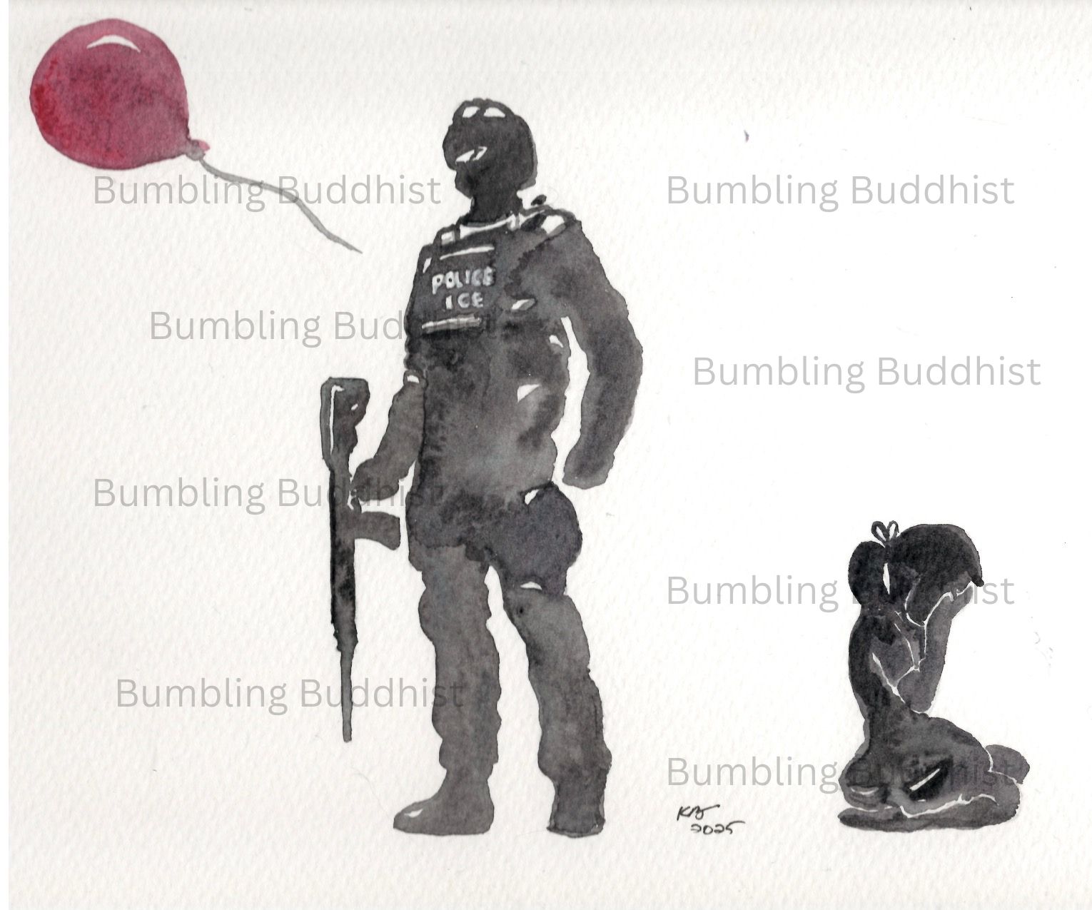 This is an original watercolor painting, signed by the artist. The painting is on 9" x 12" 640gsm cotton watercolor paper; the painting is finished with wax medium to protect pigments.